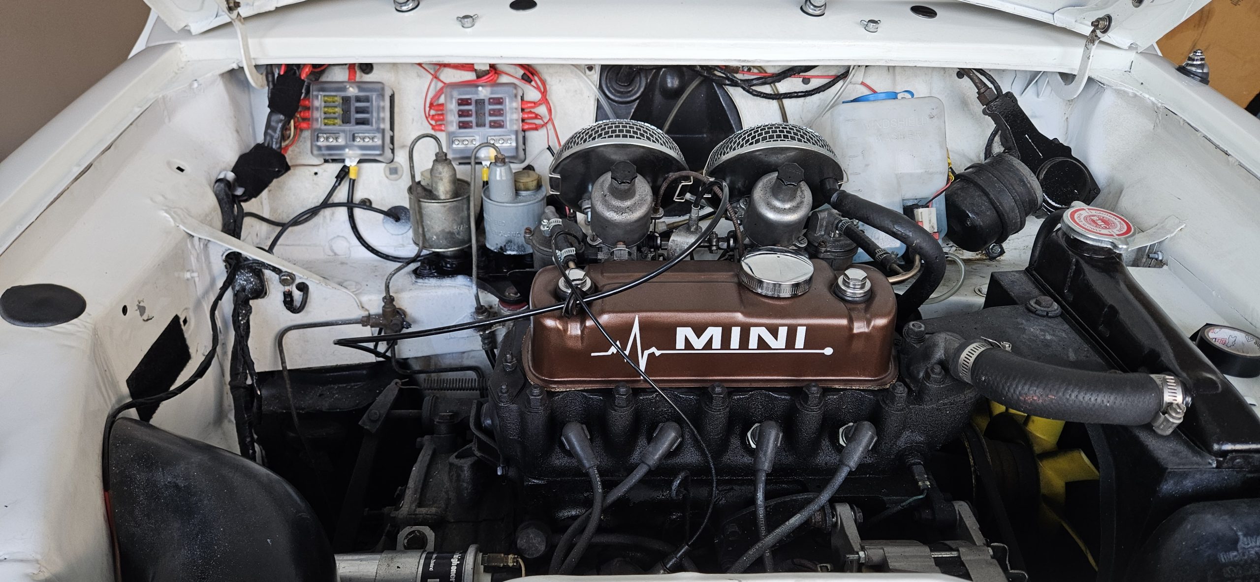 A lot of the electrics have been replaced, including two new fuse boxes (Minis don’t normally have a fuse box), and LEDs where I can with out breaking the law (You’re not allowed LED headlights in old cars in NZ .. basically).